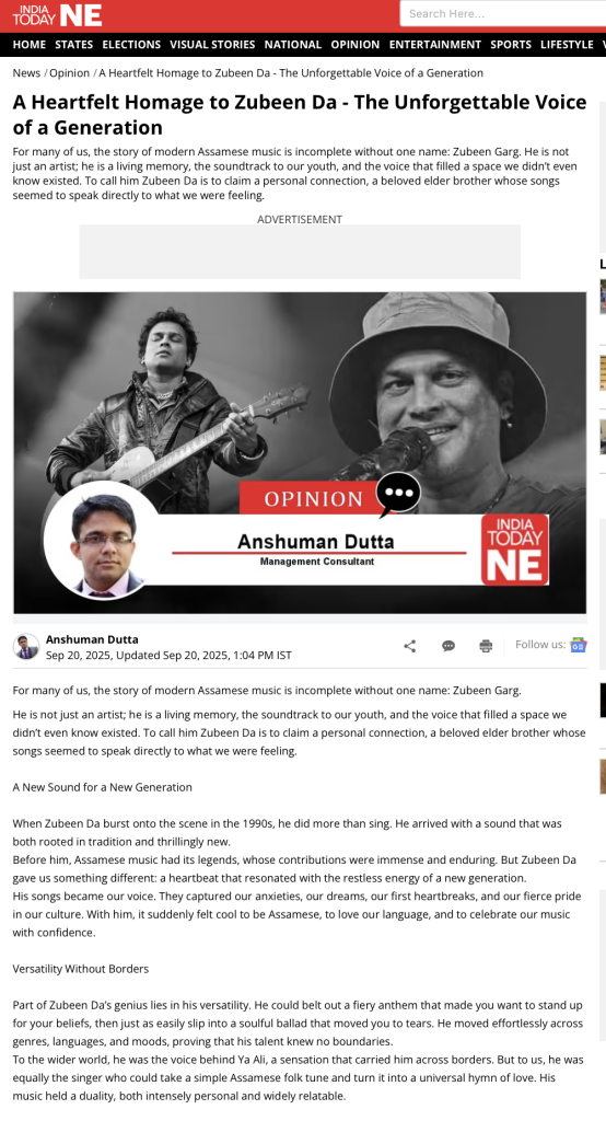 On that fateful evening in Singapore, when news broke that Zubeen Garg, the beloved voice of Assam had died under mysterious circumstances, shockwaves rippled far beyond the Brahmaputra. It was not just the passing of a singer, composer, and actor. It was the silencing of an icon whose music stitched together generations, languages, and geographies. For millions, Zubeen was not merely a performer but a part of their personal and cultural DNA. Yet amid the grief, there is anger. And amid the mourning, there