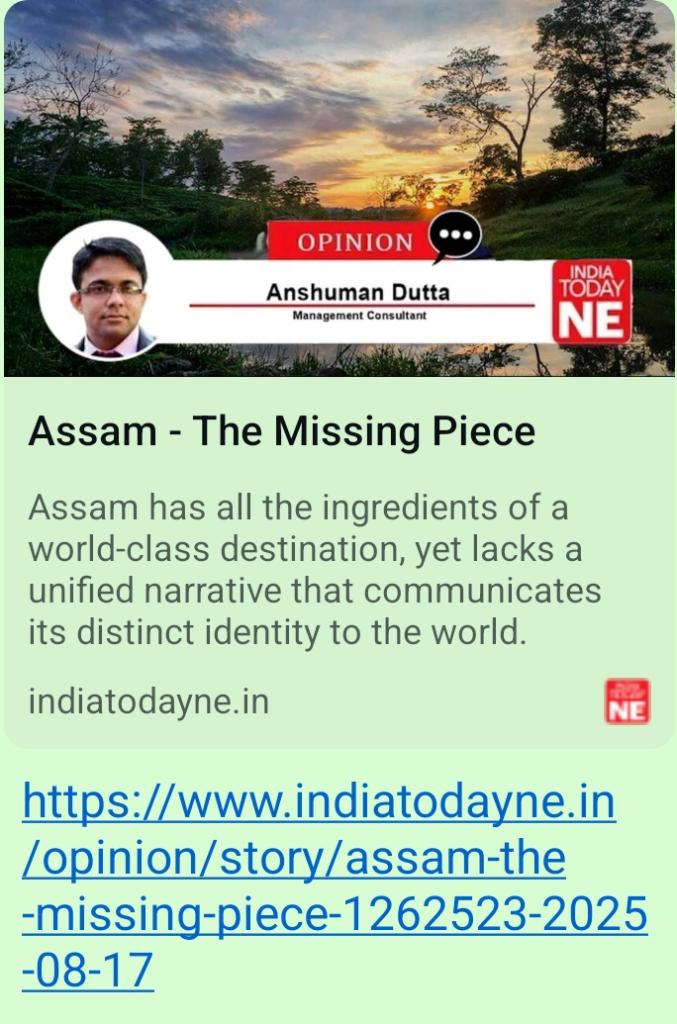 A NIT Trichy alumnus who blends professional creativity with grassroots cultural leadership, Anshuman Dutta uses his marketing expertise to influence global audiences while writing and speaking on technology, identity, and society. He has completed a specialization in Management Communication from Harvard University, enhancing his ability to craft persuasive, high-impact narratives across corporate and community domains. A strong believer in mentorship, he volunteers with Xomidhan, a platform offering career guidance to students from Northeast India. Anshuman is also an active writer and columnist, he pens the popular scholarship guidance column in The Assam Tribune and contributes regular opinion pieces to platforms like India Today NE, Northeast Now, Forbes, YourStory, and The Bharatiya. Whether he’s driving a brand transformation or hosting a Bihu celebration in Chennai, he brings the same passion, clarity, and cultural rootedness to every endeavor. - - - https://councils.forbes.com/profile/Anshuman-Dutta-Associate-Director-Cognizant/7d01ea58-aec1-49e4-8480-6ff54ce651d7 https://www.indiatodayne.in/author/anshuman-dutta https://nenow.in/author/anshumandutta https://thebharatiya.in/author/bharatiya_anshuman/ https://yourstory.com/author/anshuman-dutta