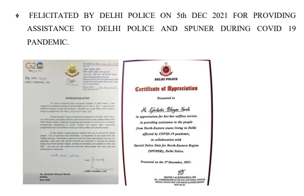 Presently Serving as the Delhi Police NorthEast Representative(Assam) Headed by Joint Commissioner of Police Sh. PN Khrimey (SPUNER) previously worked under the guidance of Joint commissioner of Police Sh. Hibu Tamang.