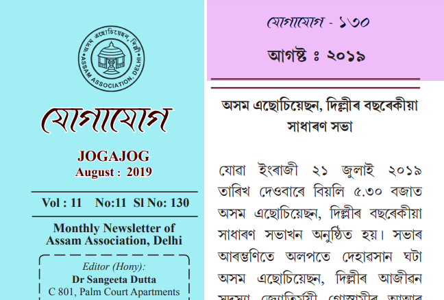 Jogajog - the Monthly Newsletter of Assam Association, Delhi for the month of August 2019 has been published and attached. A few important news published are viz.
