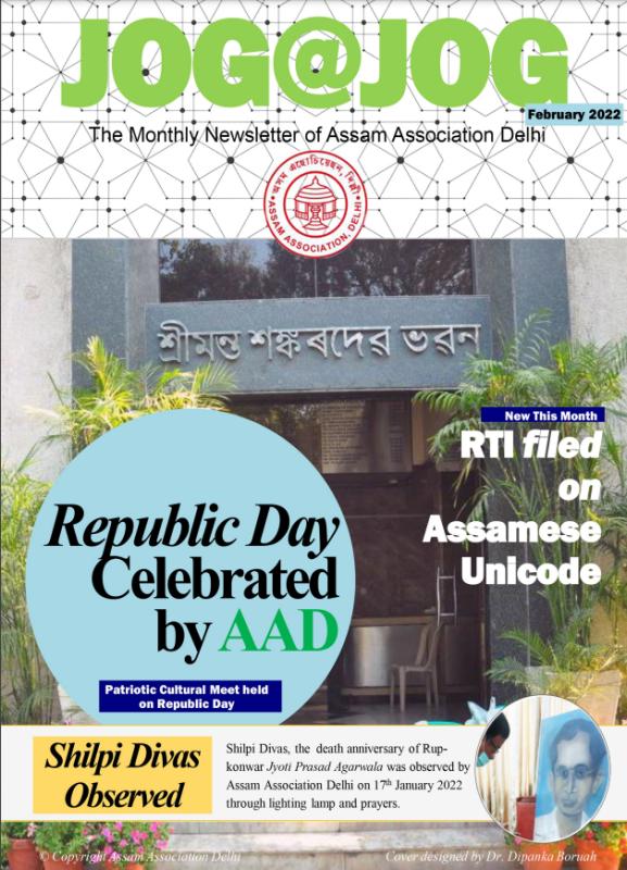 The advanced copy of the english version of Jogajog –the Monthly newsletter of Assam Association Delhi for the month of Feb 2022 is attached Special thanks to Sri Dipanka Boruah, PhD , Associate Senior Faculty. Discipline of Industrial Design, NID Assam, Jorhat 785 014, India for the new cover design & make-up. The Assamese version is being sent soon.